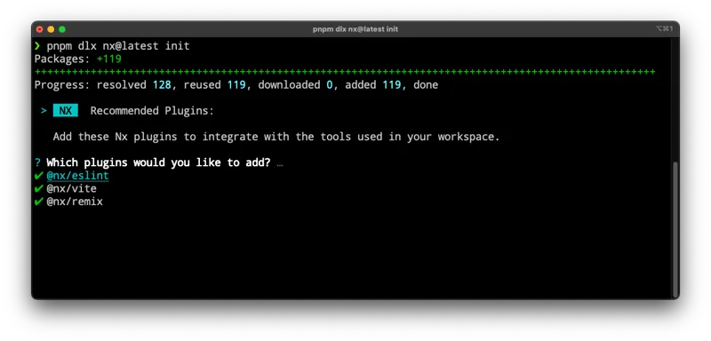 Starting with Nx 18, if you now run nx init on an existing npm/yarn/pnpm workspace, you'll also get asked about installing plugins based on the setup you have in your monorepo.